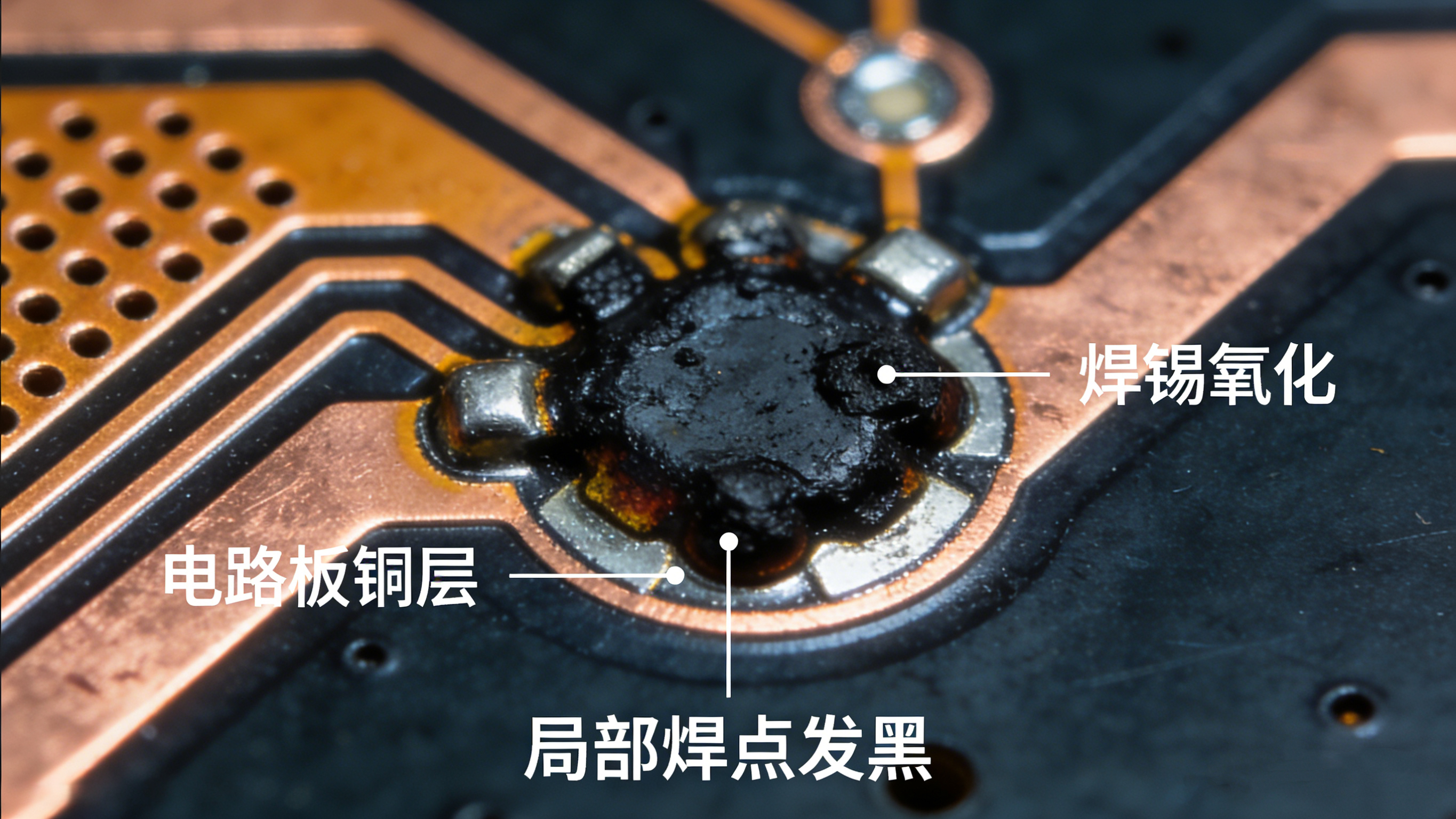 尤其局部区域(如PCB厚铜区域、大型元器件底部),散热速度本身较慢,若降温速率再放慢,氧化现象会更明显,形成局部发黑的痕迹。此外,降温阶段炉内氧气含量过高,也会加剧焊点氧化,雪上加霜。